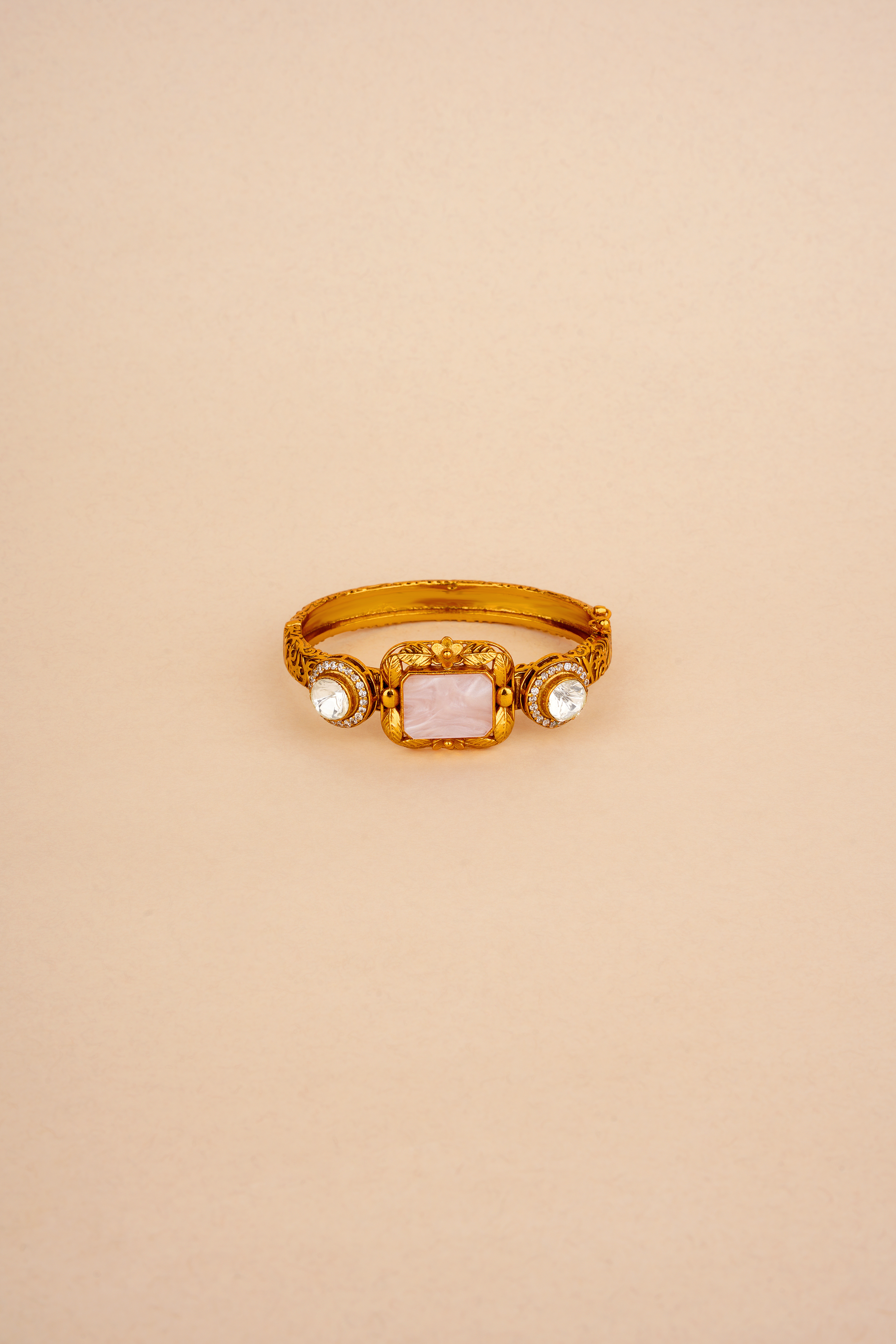Gold Plated Bracelet with Pink Stone & Kundan Polki. Perfect choice for weddings, parties, and other Indian festivities.