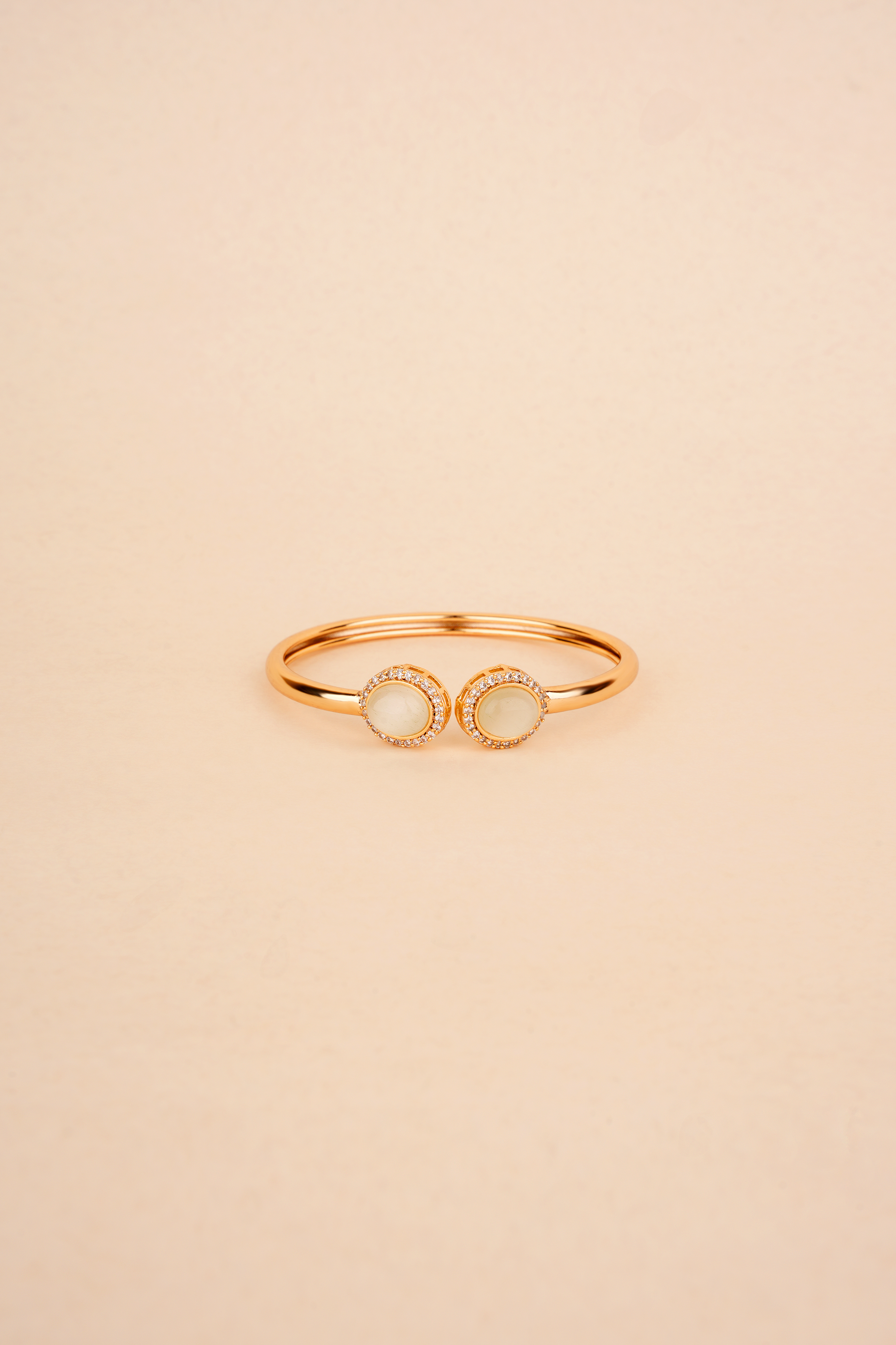 Gold Plated Cuff with two Moon Stones at the edges. Perfect choice for weddings, parties, and other Indian festivities.