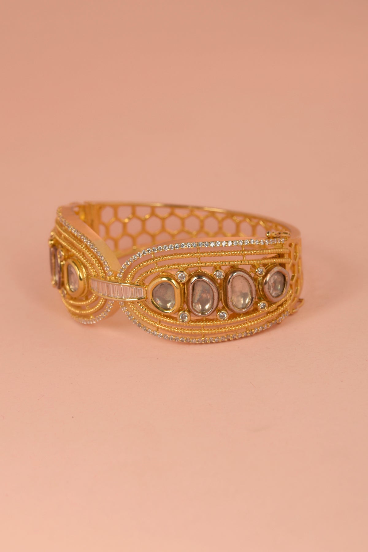 Gold Plated Kundan Polki & American Diamond Bracelet
