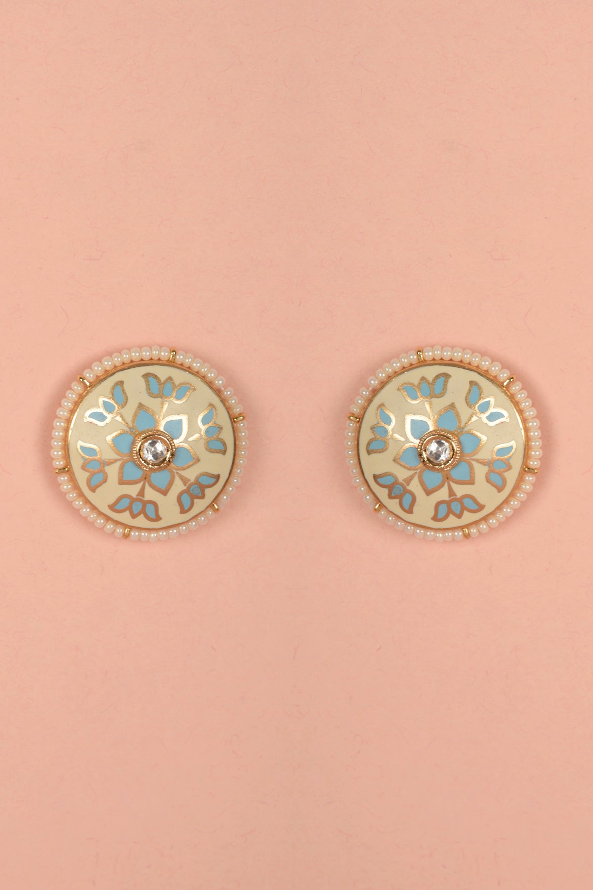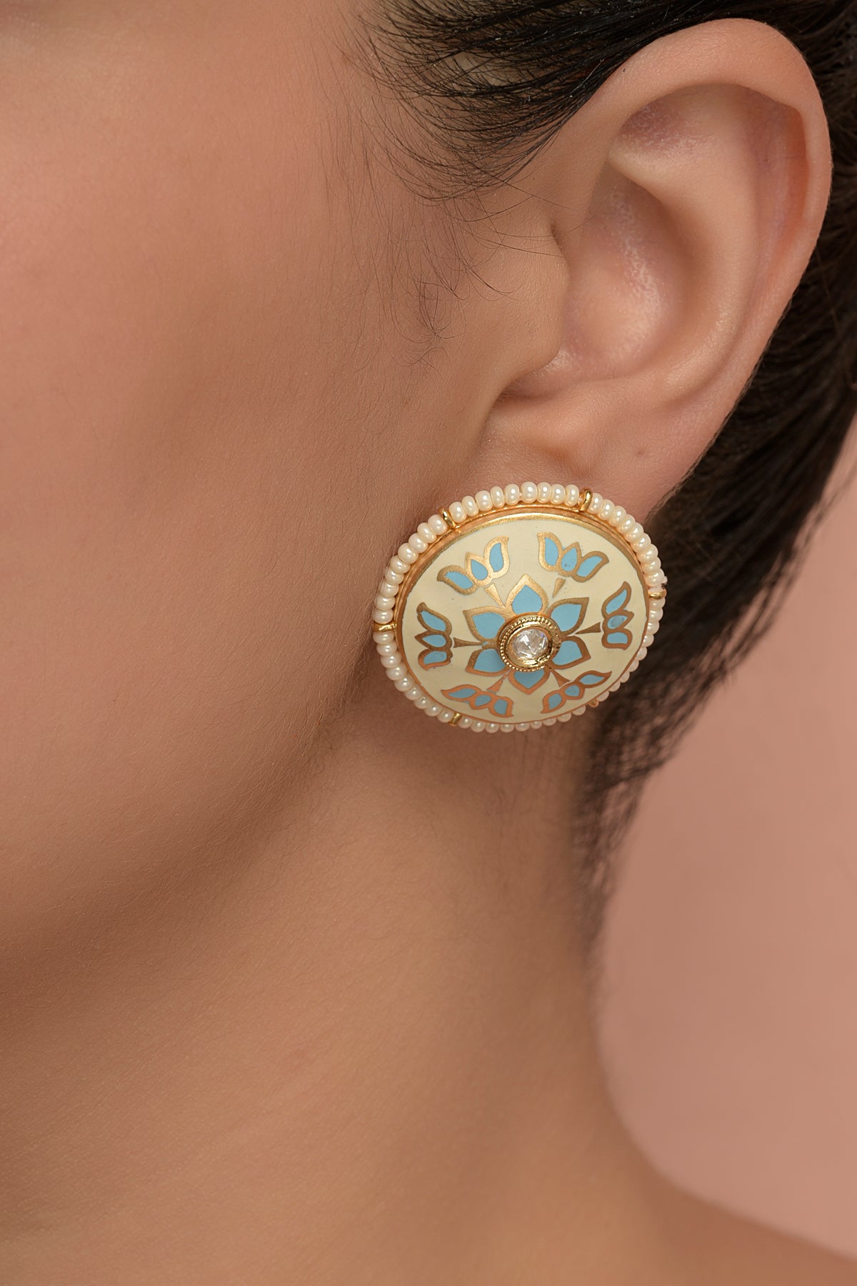 Gold Plated Kundan Polki Enamelled Stud Earrings