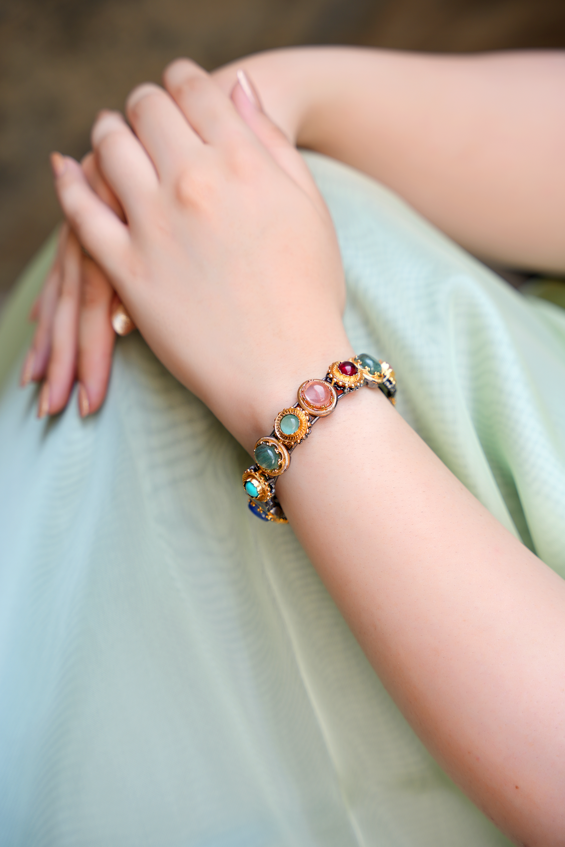 Featuring a Gold Plated Navrattan Bangle. Perfect choice for weddings, parties, and other Indian festivities.