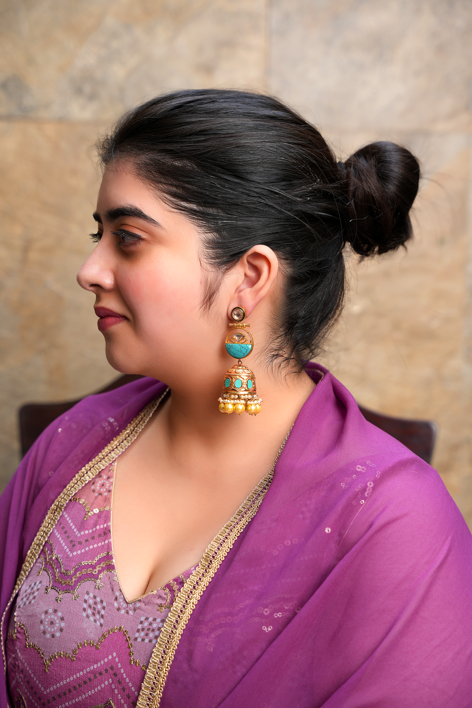 Gold Plated Turquoise Dangler Earrings with Jhumki